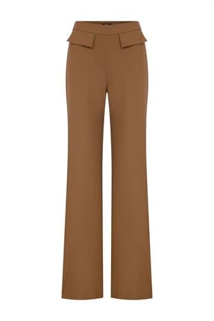 SİNTRA yüksek bel ön kapak detayı arka pensli pensli yanda gizli fermuar bol kesim pantolon.